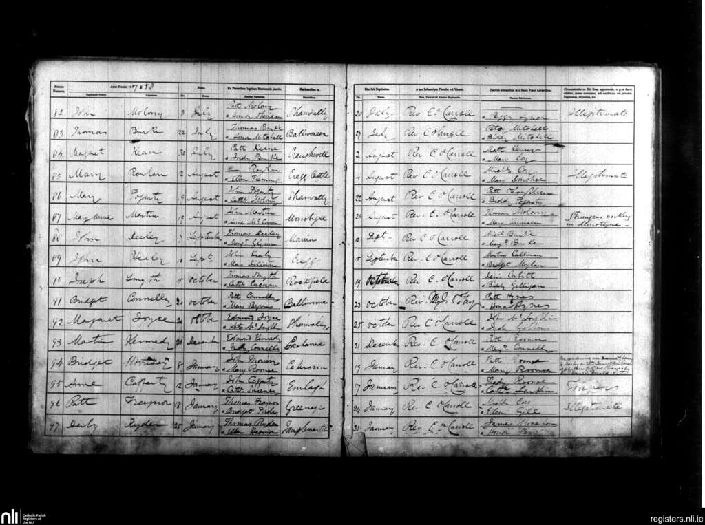 Craughwell; County of Galway; Diocese of Galway. Baptisms, July 1857 to Jan. 1858