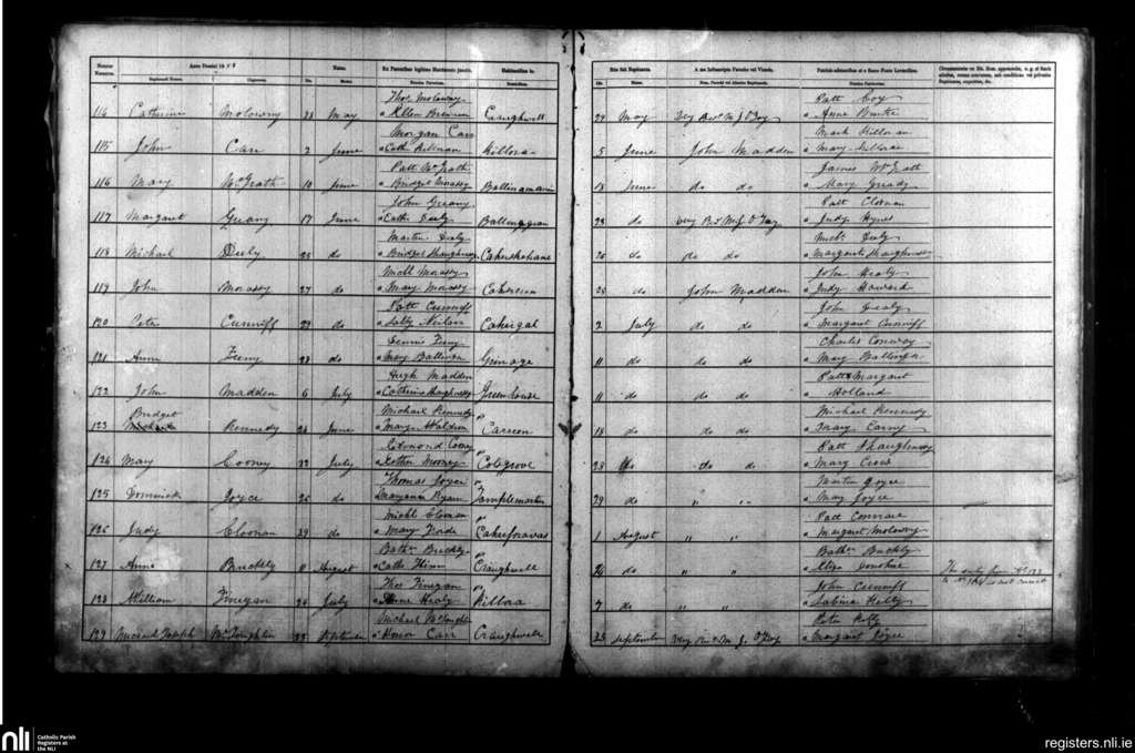 Craughwell; County of Galway; Diocese of Galway. Baptisms, May 1858 to Sep. 1858