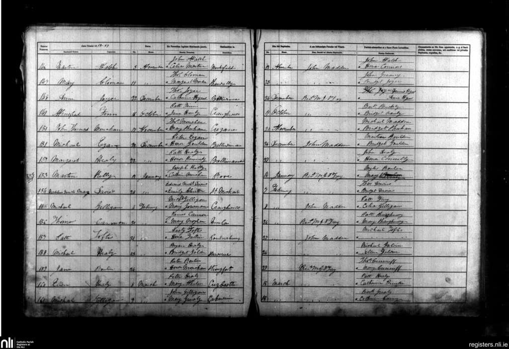 Craughwell; County of Galway; Diocese of Galway. Baptisms, Oct. 1858 to Mar. 1859