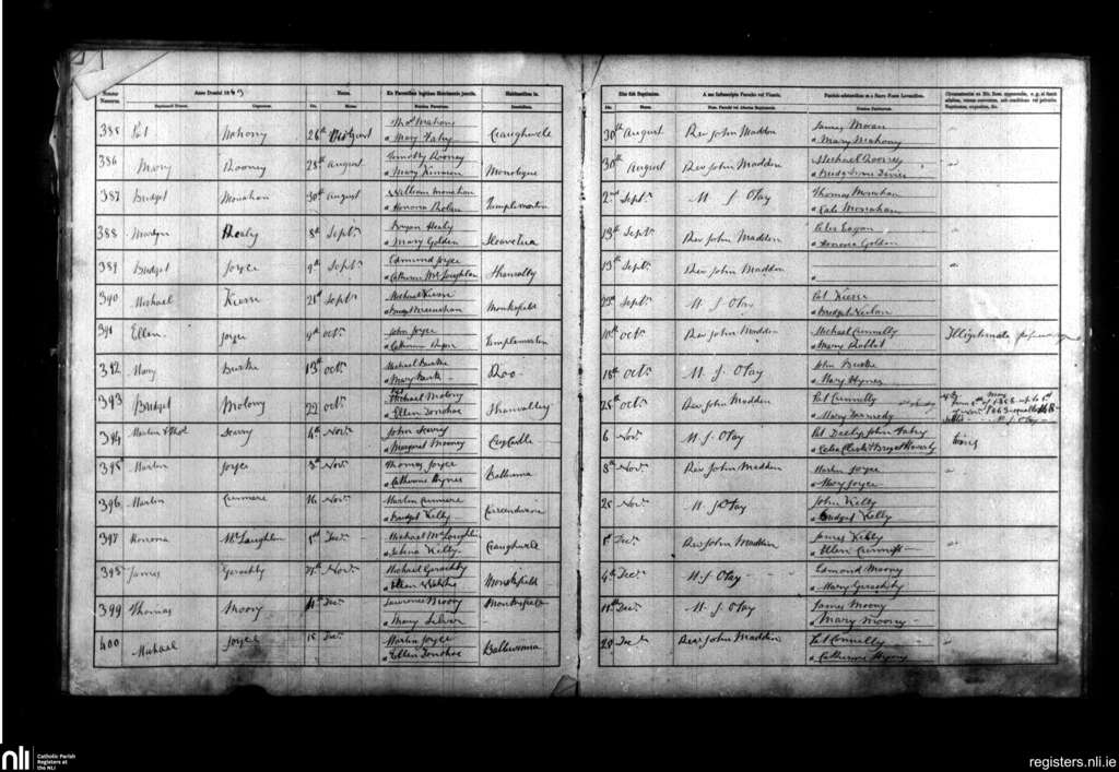 Craughwell; County of Galway; Diocese of Galway. Baptisms, Aug. 1863 to Dec. 1863