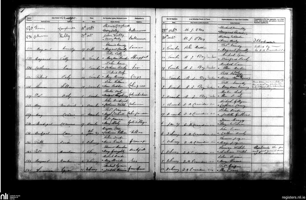 Craughwell; County of Galway; Diocese of Galway. Baptisms, Oct. 1866 to Feb. 1867