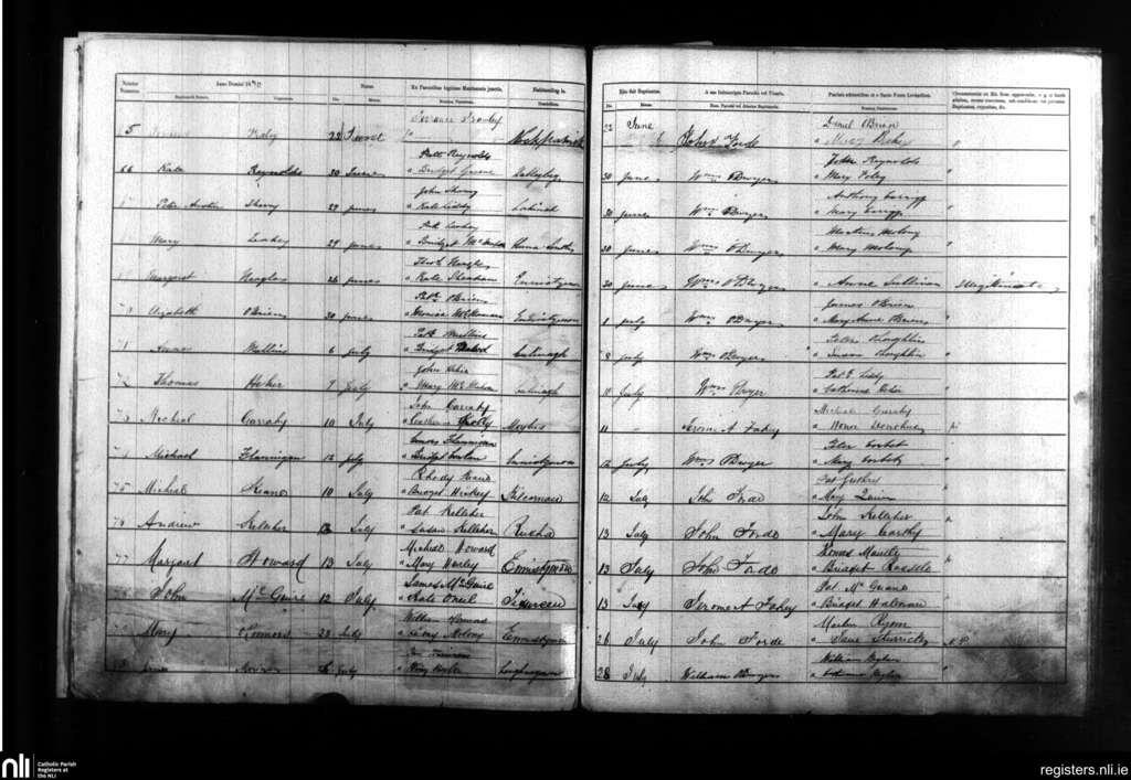 Kilmanaheen; County of Clare; Diocese of Galway. Baptisms, June 1870 to July 1870