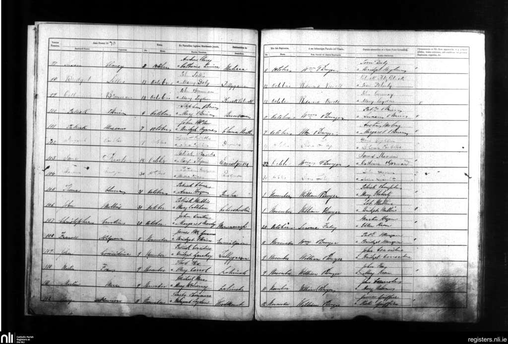 Kilmanaheen; County of Clare; Diocese of Galway. Baptisms, Oct. 1870 to Nov. 1870
