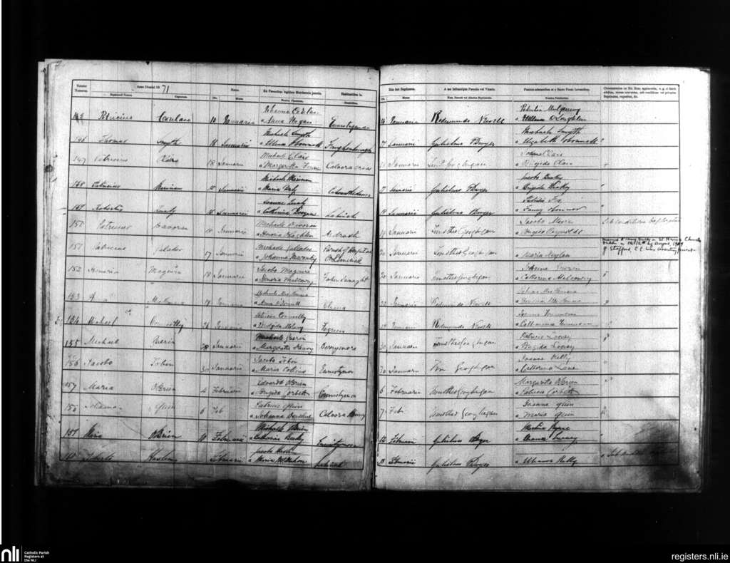 Kilmanaheen; County of Clare; Diocese of Galway. Baptisms, Jan. 1871 to Feb. 1871