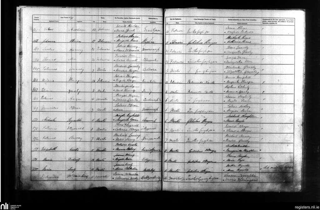 Kilmanaheen; County of Clare; Diocese of Galway. Baptisms, Feb. 1871 to Mar. 1871