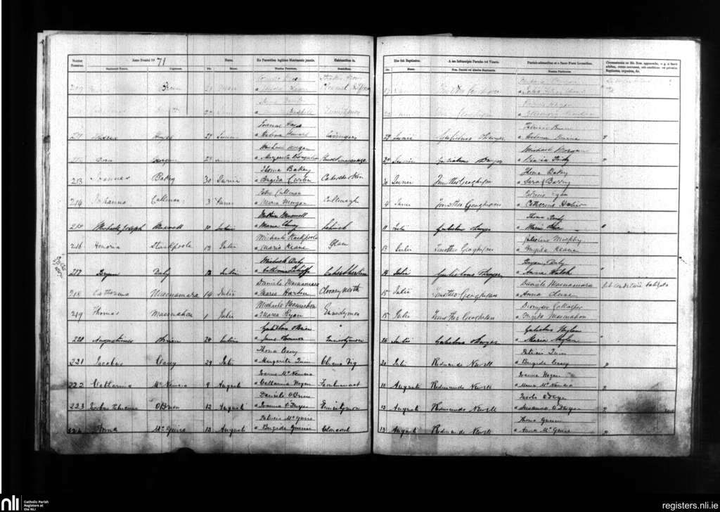 Kilmanaheen; County of Clare; Diocese of Galway. Baptisms, June 1871 to Aug. 1871