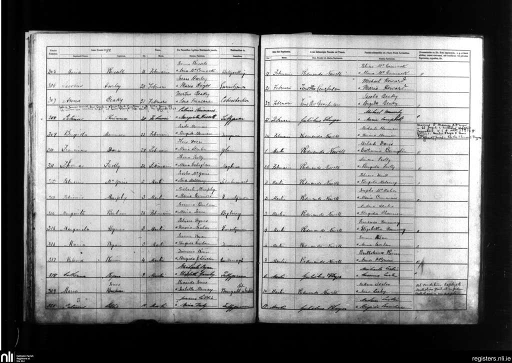 Kilmanaheen; County of Clare; Diocese of Galway. Baptisms, Feb. 1872 to Mar. 1872