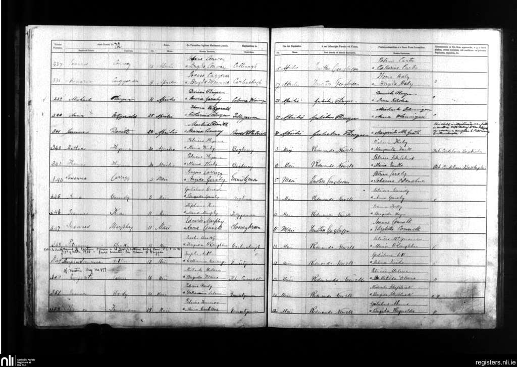 Kilmanaheen; County of Clare; Diocese of Galway. Baptisms, Apr. 1872 to May 1872