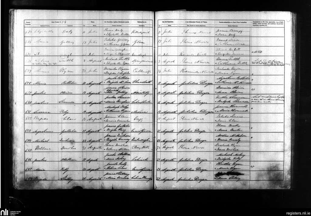 Kilmanaheen; County of Clare; Diocese of Galway. Baptisms, July 1874 to Aug. 1874