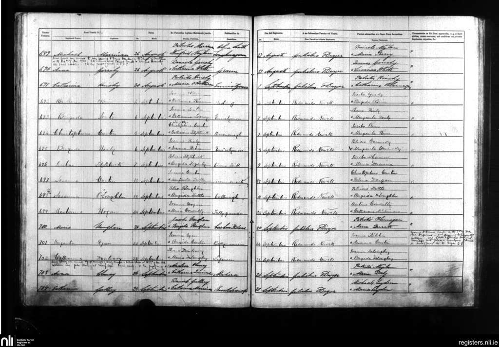Kilmanaheen; County of Clare; Diocese of Galway. Baptisms, Aug. 1874 to Sep. 1874