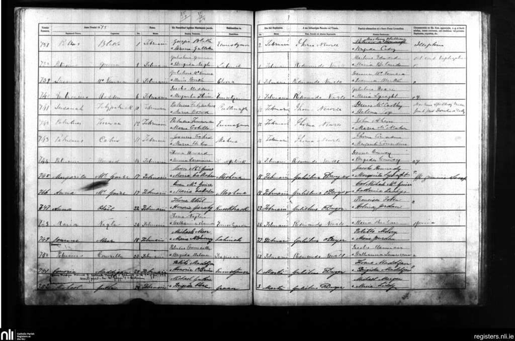 Kilmanaheen; County of Clare; Diocese of Galway. Baptisms, Feb. 1875 to Mar. 1875