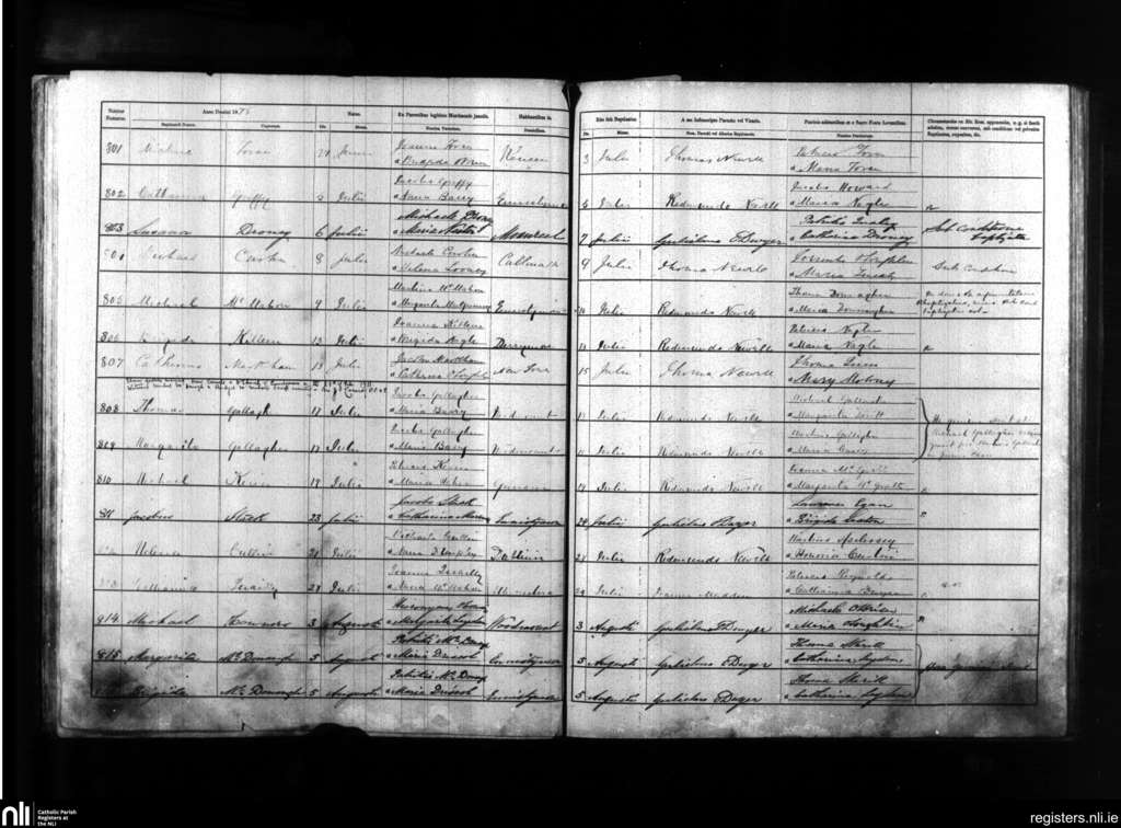 Kilmanaheen; County of Clare; Diocese of Galway. Baptisms, July 1875 to Aug. 1875