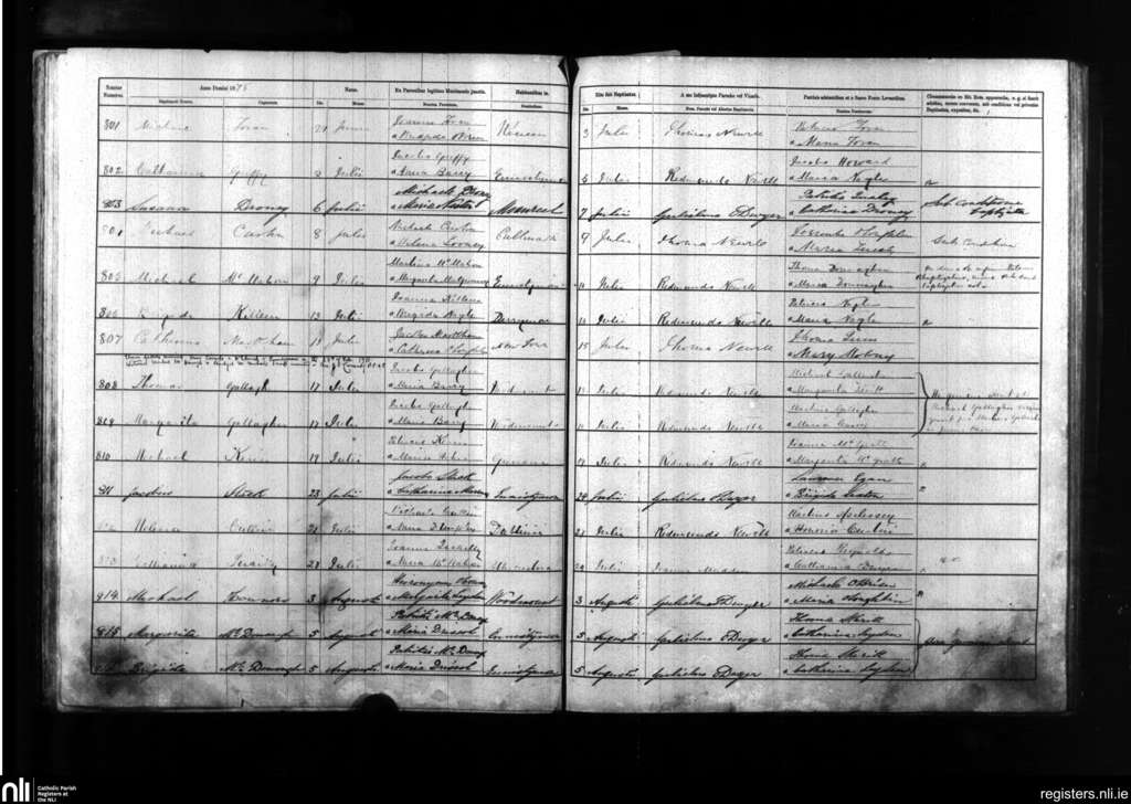 Kilmanaheen; County of Clare; Diocese of Galway. Baptisms, July 1875 to Aug. 1875