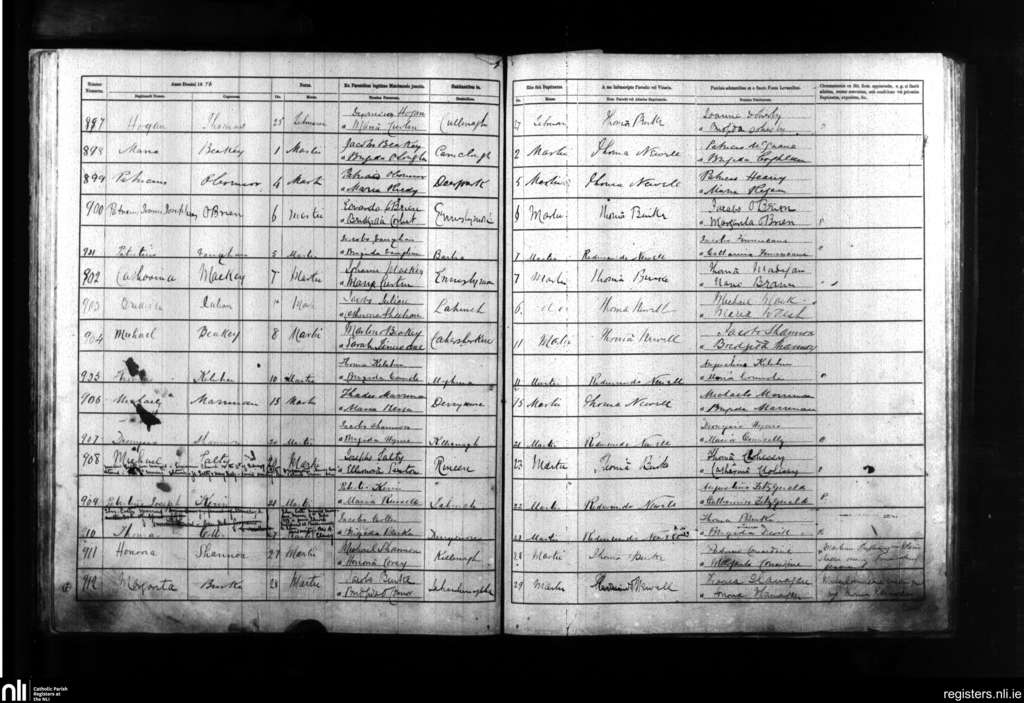 Kilmanaheen; County of Clare; Diocese of Galway. Baptisms, Feb. 1876 to Mar. 1876