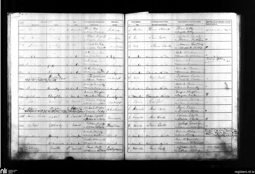 Kilmanaheen; County of Clare; Diocese of Galway. Baptisms, Nov. 1876 to Dec. 1876