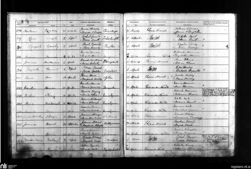Kilmanaheen; County of Clare; Diocese of Galway. Baptisms, Mar. 1878 to Apr. 1878