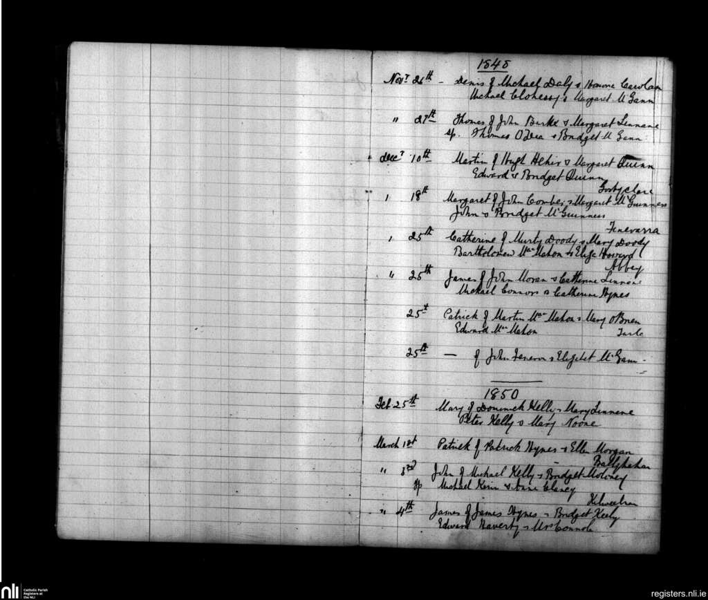 New Quay; County of Clare; Diocese of Galway. Baptisms, Nov. 1848 to Mar. 1850