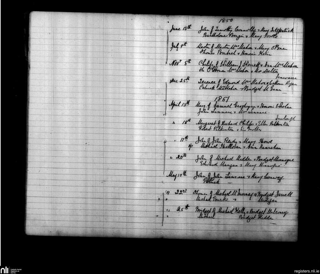 New Quay; County of Clare; Diocese of Galway. Baptisms, June 1850 to May 1851