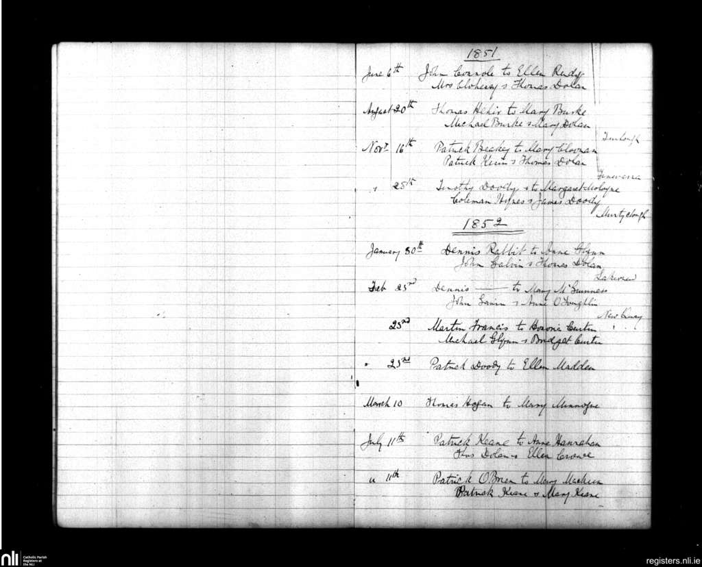 New Quay; County of Clare; Diocese of Galway. Marriages, June 1851 to July 1852