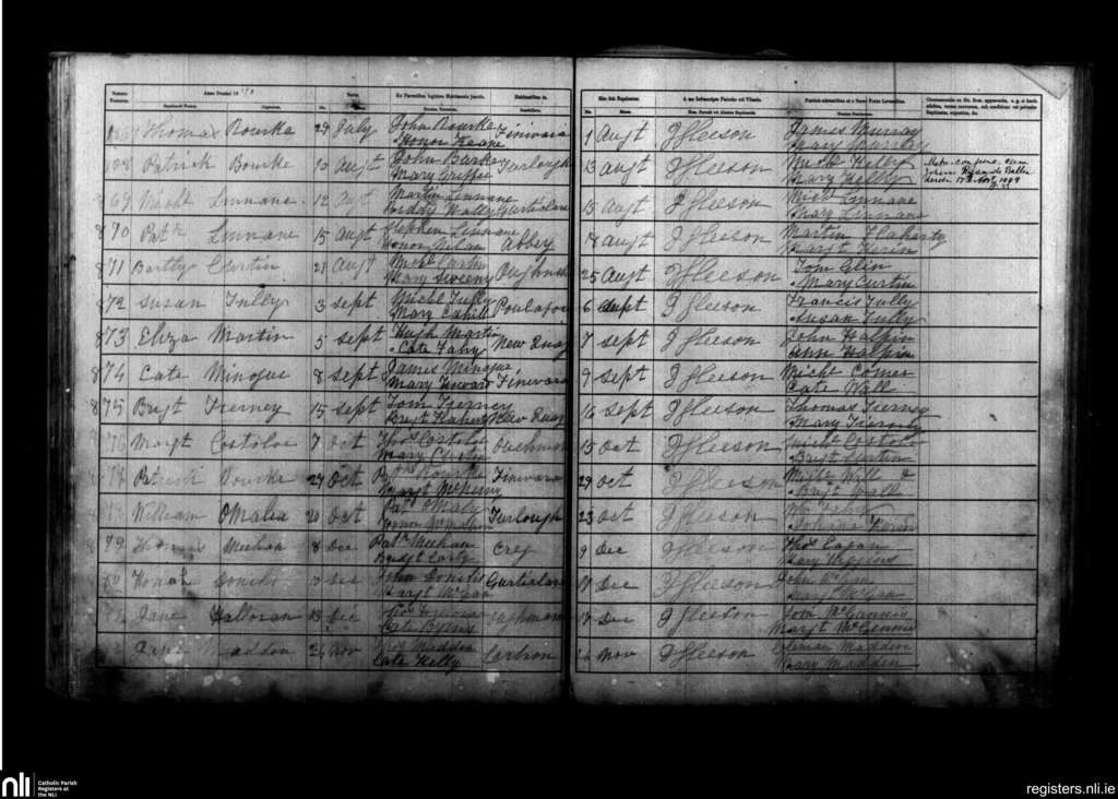 New Quay; County of Clare; Diocese of Galway. Baptisms, Aug. 1870 to Dec. 1870