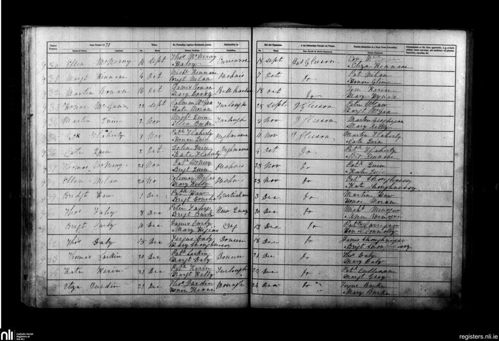 New Quay; County of Clare; Diocese of Galway. Baptisms, Sep. 1871 to Dec. 1871