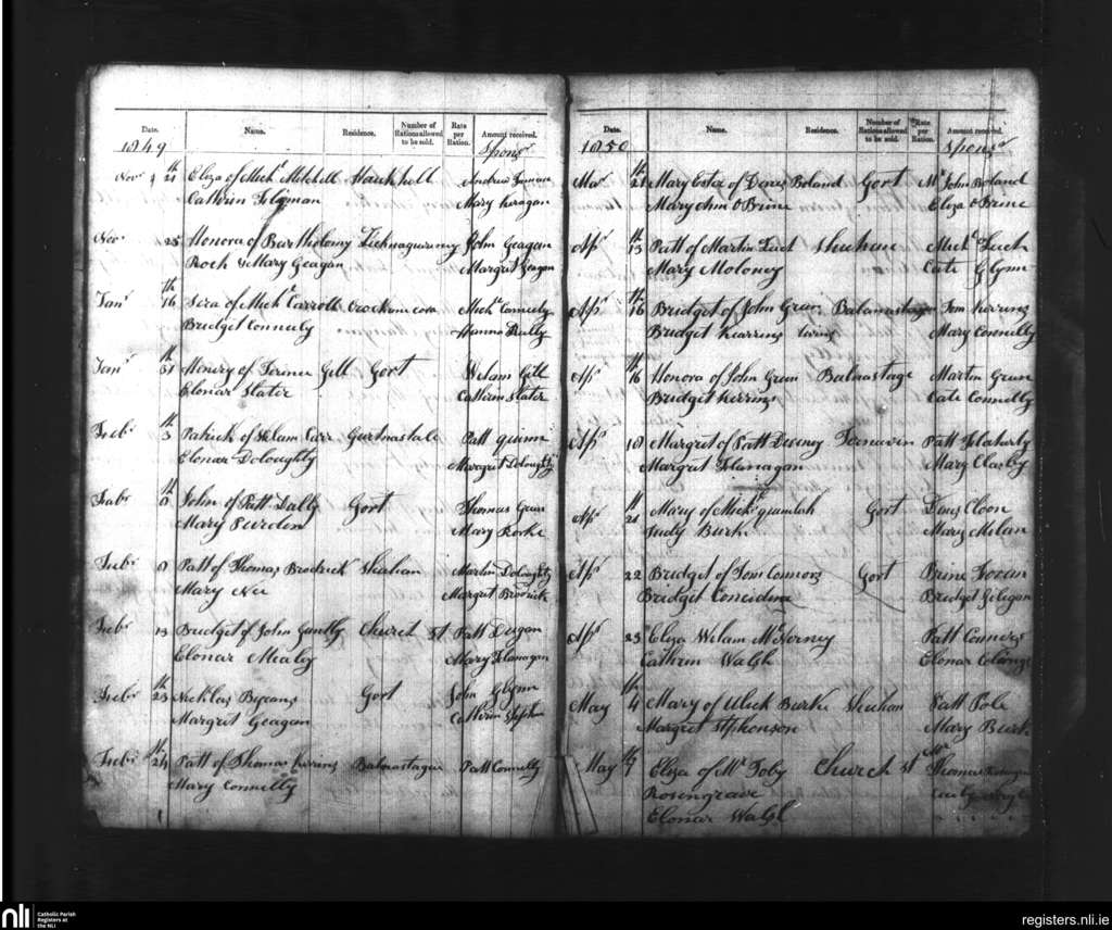 Gort; County of Galway; Diocese of Galway. Baptisms, Nov. 1849 to May 1850