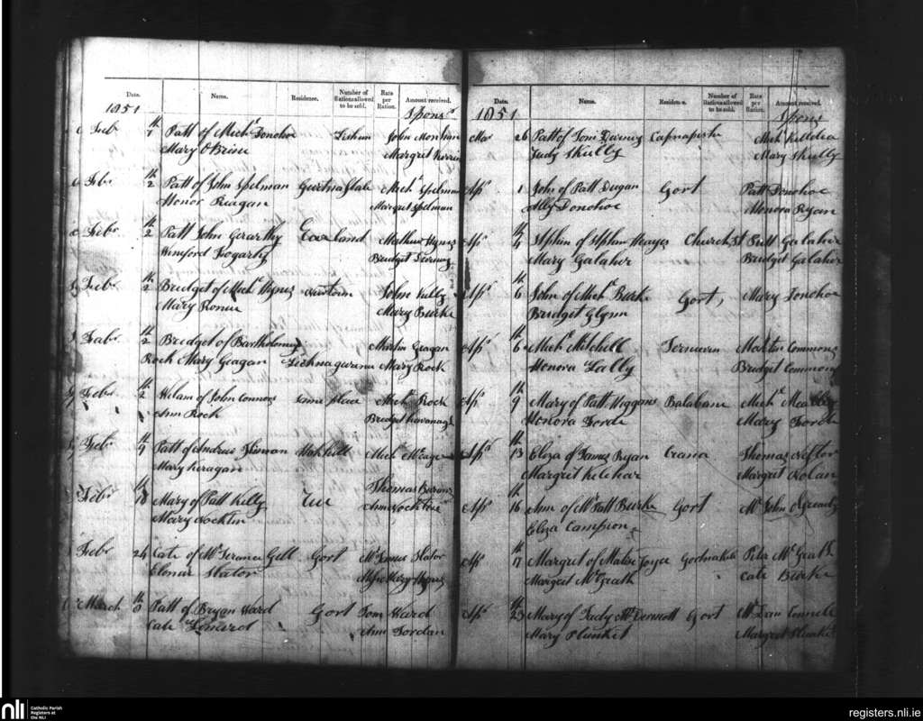 Gort; County of Galway; Diocese of Galway. Baptisms, Feb. 1851 to Apr. 1851