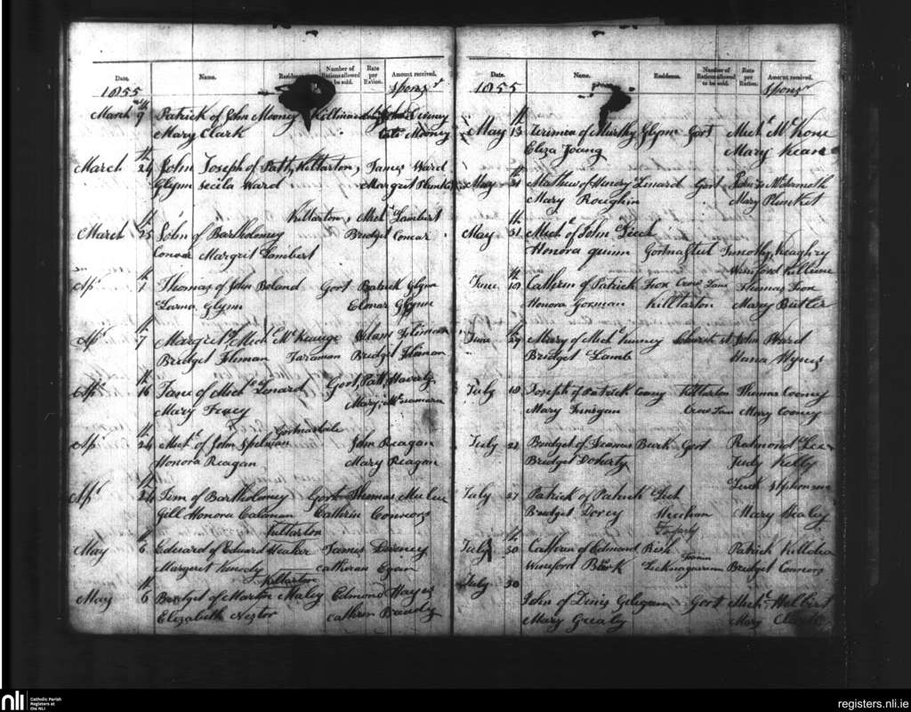Gort; County of Galway; Diocese of Galway. Baptisms, Mar. 1855 to July 1855