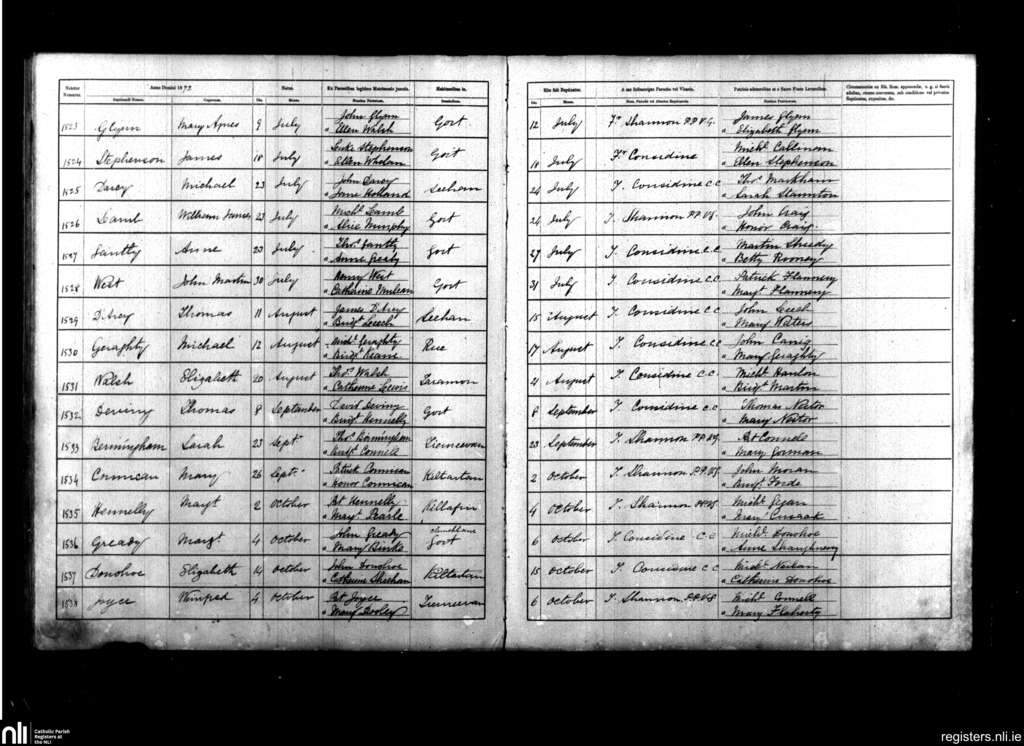 Gort; County of Galway; Diocese of Galway. Baptisms, July 1854 to Sep. 1854