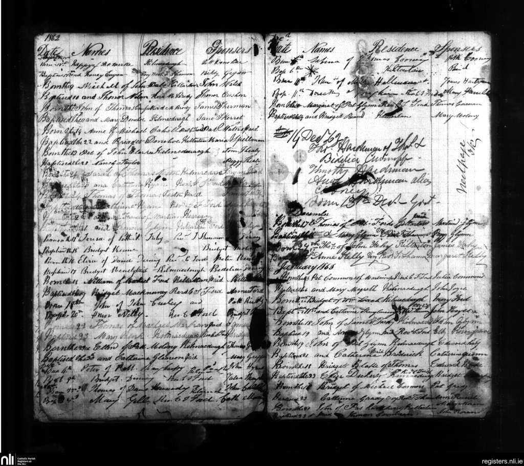Gort; County of Galway; Diocese of Galway. Baptisms, Sep. 1862 to Jan. 1863