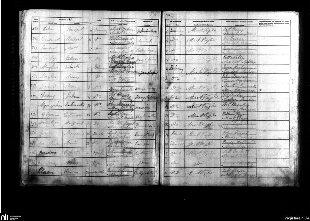 Kilbeacanty; County of Galway; Diocese of Galway. Baptisms, Jan. 1868 to Apr. 1868