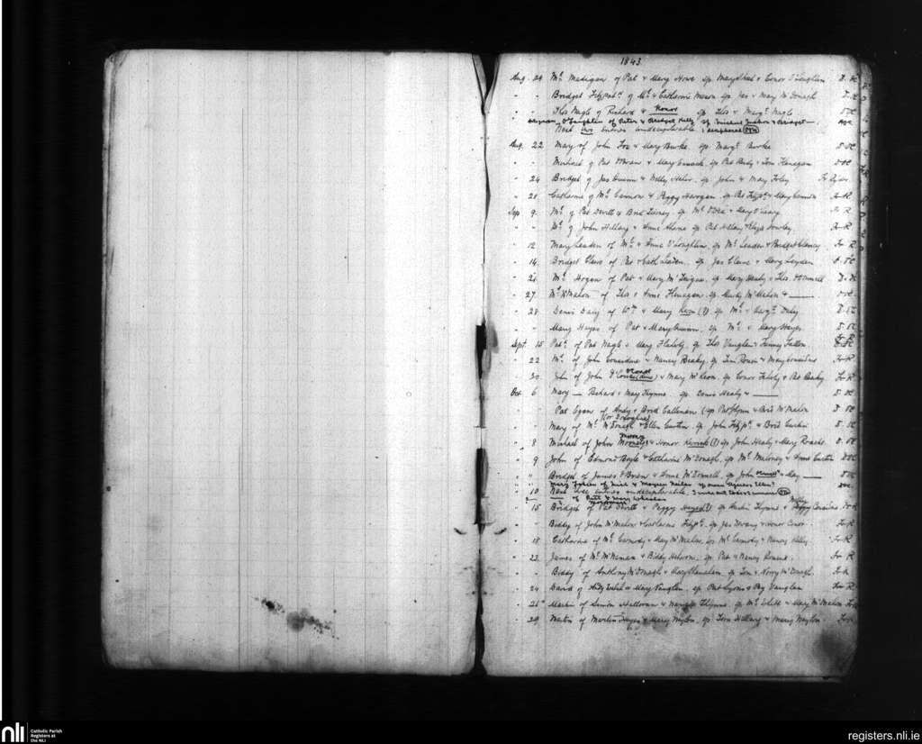 Liscannor; County of Clare; Diocese of Galway. Baptisms, Aug. 1843 to Oct. 1843