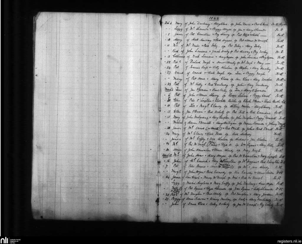 Liscannor; County of Clare; Diocese of Galway. Baptisms, Feb. 1844 to Apr. 1844