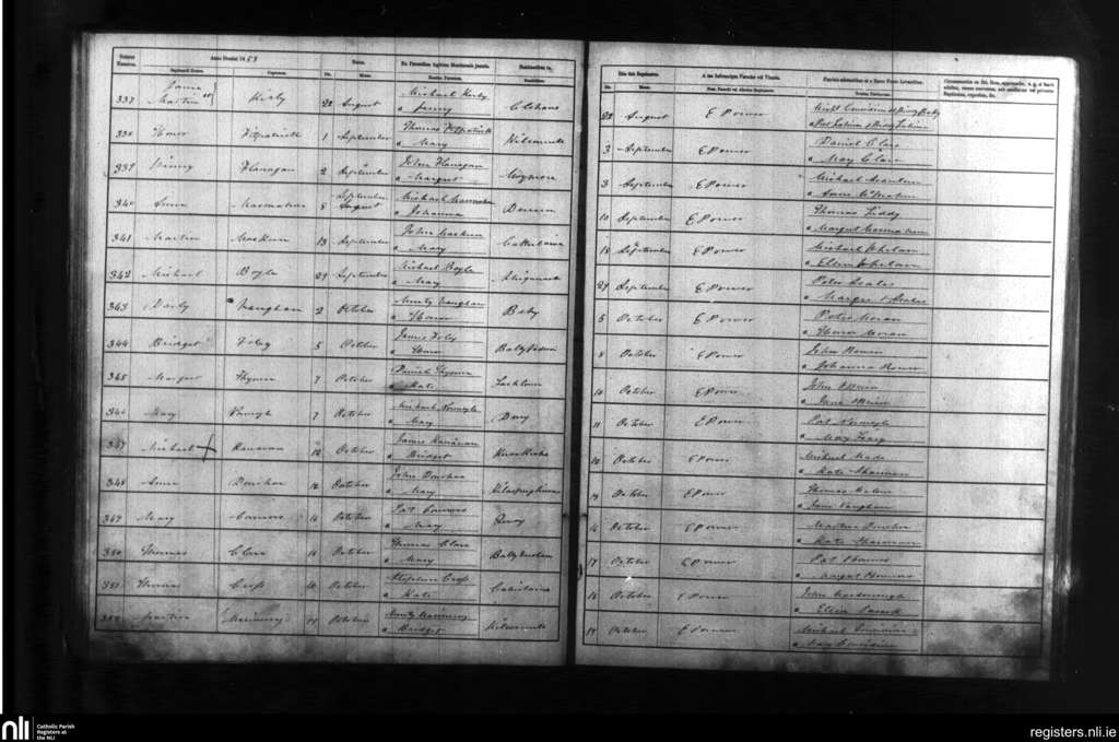Liscannor; County of Clare; Diocese of Galway. Baptisms, Aug. 1858 to Oct. 1858