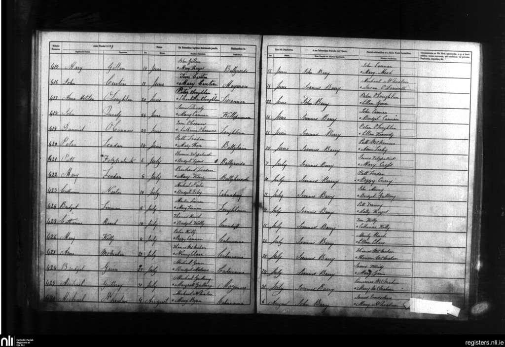 Liscannor; County of Clare; Diocese of Galway. Baptisms, June 1859 to Aug. 1859