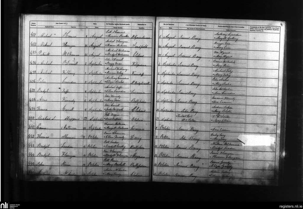 Liscannor; County of Clare; Diocese of Galway. Baptisms, Aug. 1859 to Oct. 1859