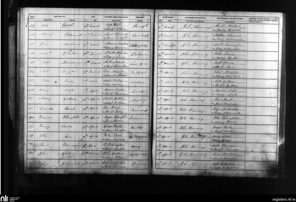 Liscannor; County of Clare; Diocese of Galway. Baptisms, Mar. 1861 to Apr. 1861