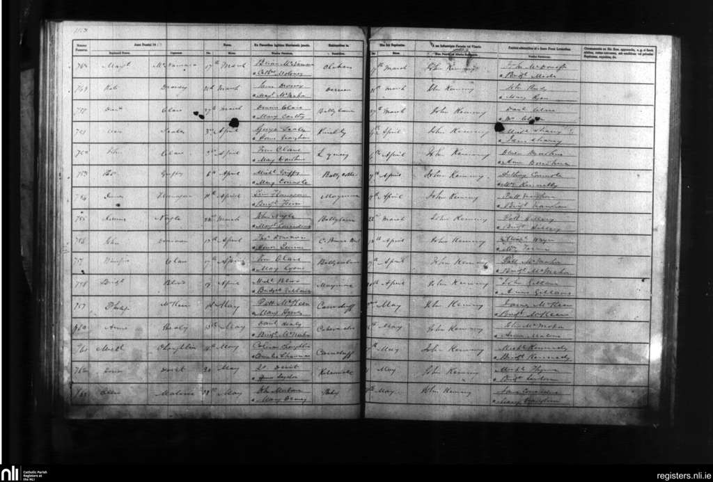 Liscannor; County of Clare; Diocese of Galway. Baptisms, Mar. 1863 to May 1863