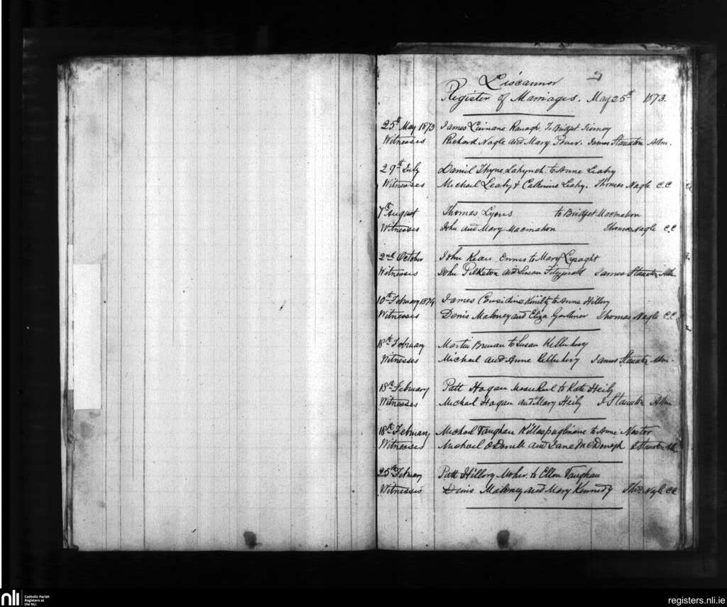 Liscannor; County of Clare; Diocese of Galway. Marriages, May 1873 to Feb. 1874