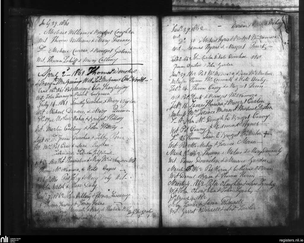Kilfenora; County of Clare; Diocese of Galway. Marriages, July 1860 to Mar. 1862