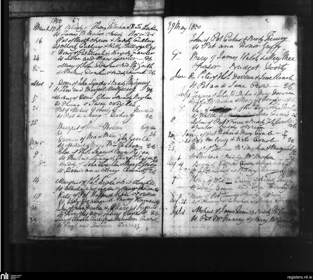 Kilfenora; County of Clare; Diocese of Galway. Baptisms, Mar. 1850 to Sep. 1850