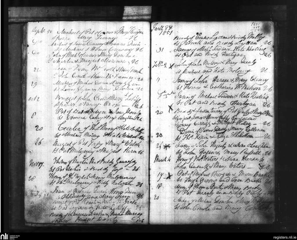 Kilfenora; County of Clare; Diocese of Galway. Baptisms, Sep. 1850 to Mar. 1851