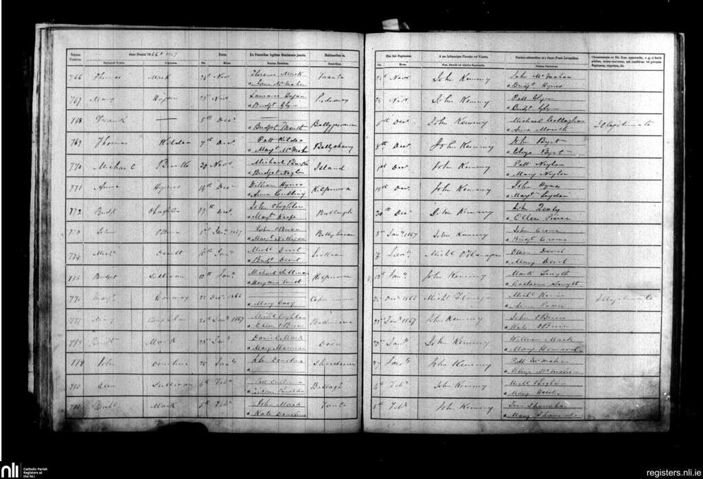 Kilfenora; County of Clare; Diocese of Galway. Baptisms, Nov. 1866 to Feb. 1867