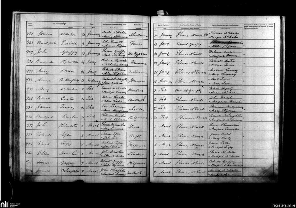 Kilfenora; County of Clare; Diocese of Galway. Baptisms, Jan. 1869 to Mar. 1869