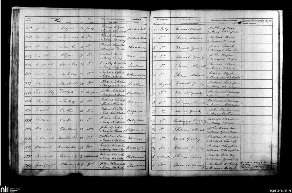 Kilfenora; County of Clare; Diocese of Galway. Baptisms, July 1873 to Sep. 1873
