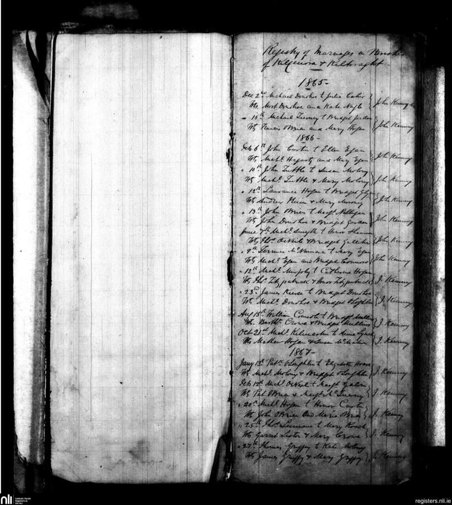 Kilfenora; County of Clare; Diocese of Galway. Marriages, Dec. 1865 to Feb. 1867