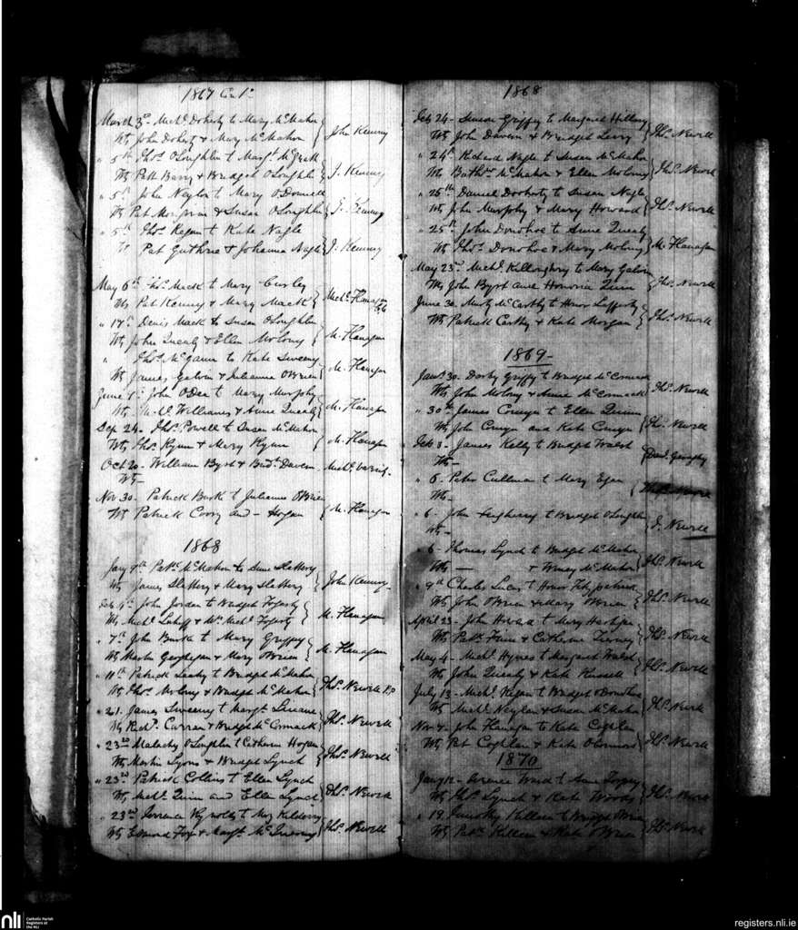 Kilfenora; County of Clare; Diocese of Galway. Marriages, Mar. 1867 to Jan. 1870