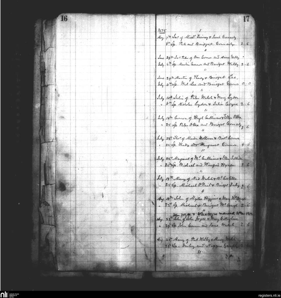 Killanin; County of Galway; Diocese of Tuam. Baptisms, May 1875 to Aug. 1875