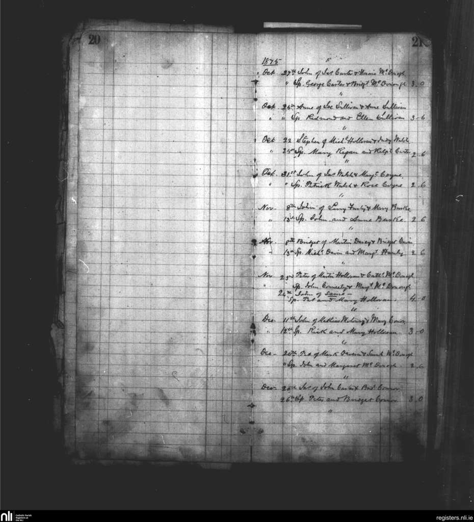 Killanin; County of Galway; Diocese of Tuam. Baptisms, Oct. 1875 to Dec. 1875