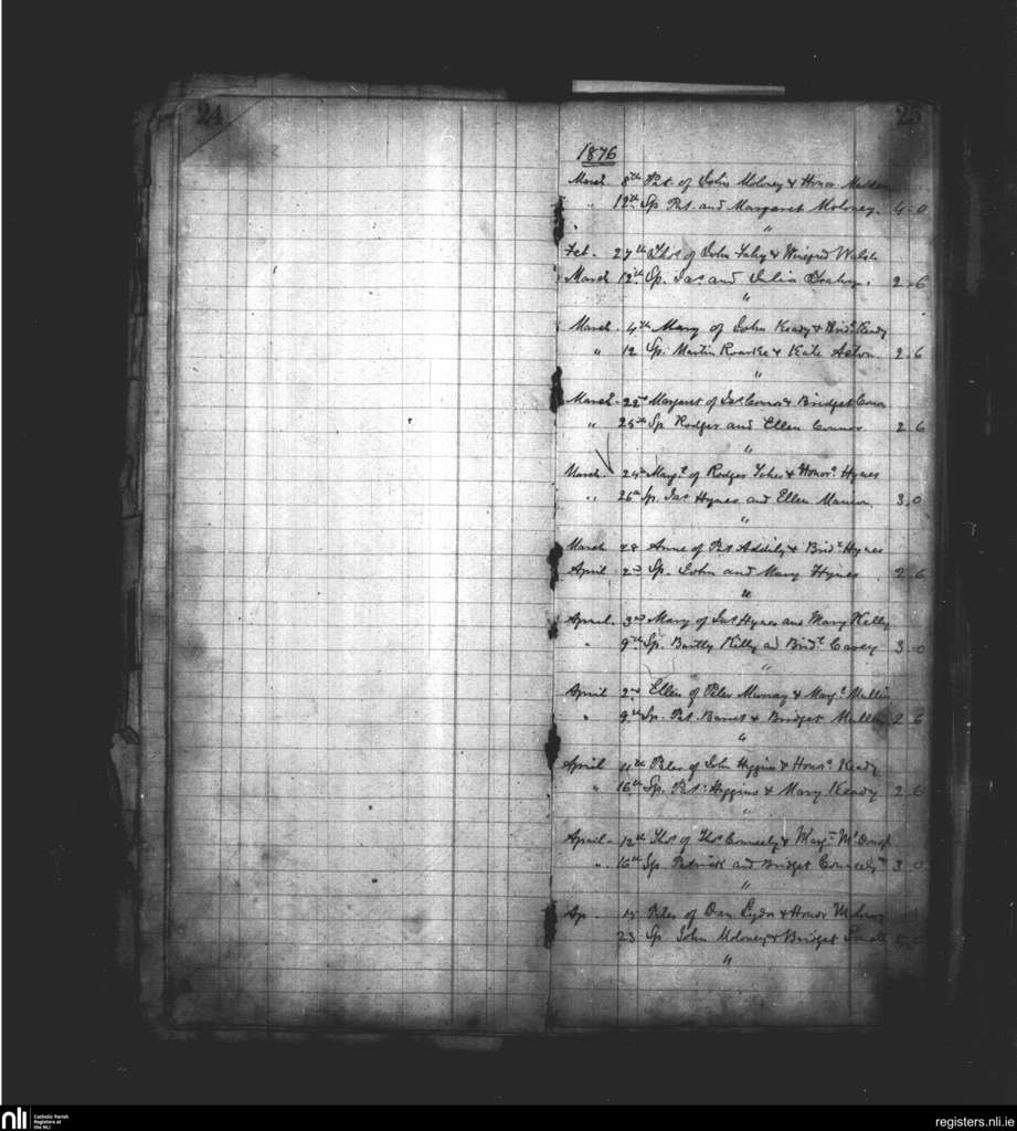 Killanin; County of Galway; Diocese of Tuam. Baptisms, Mar. 1876 to Apr. 1876